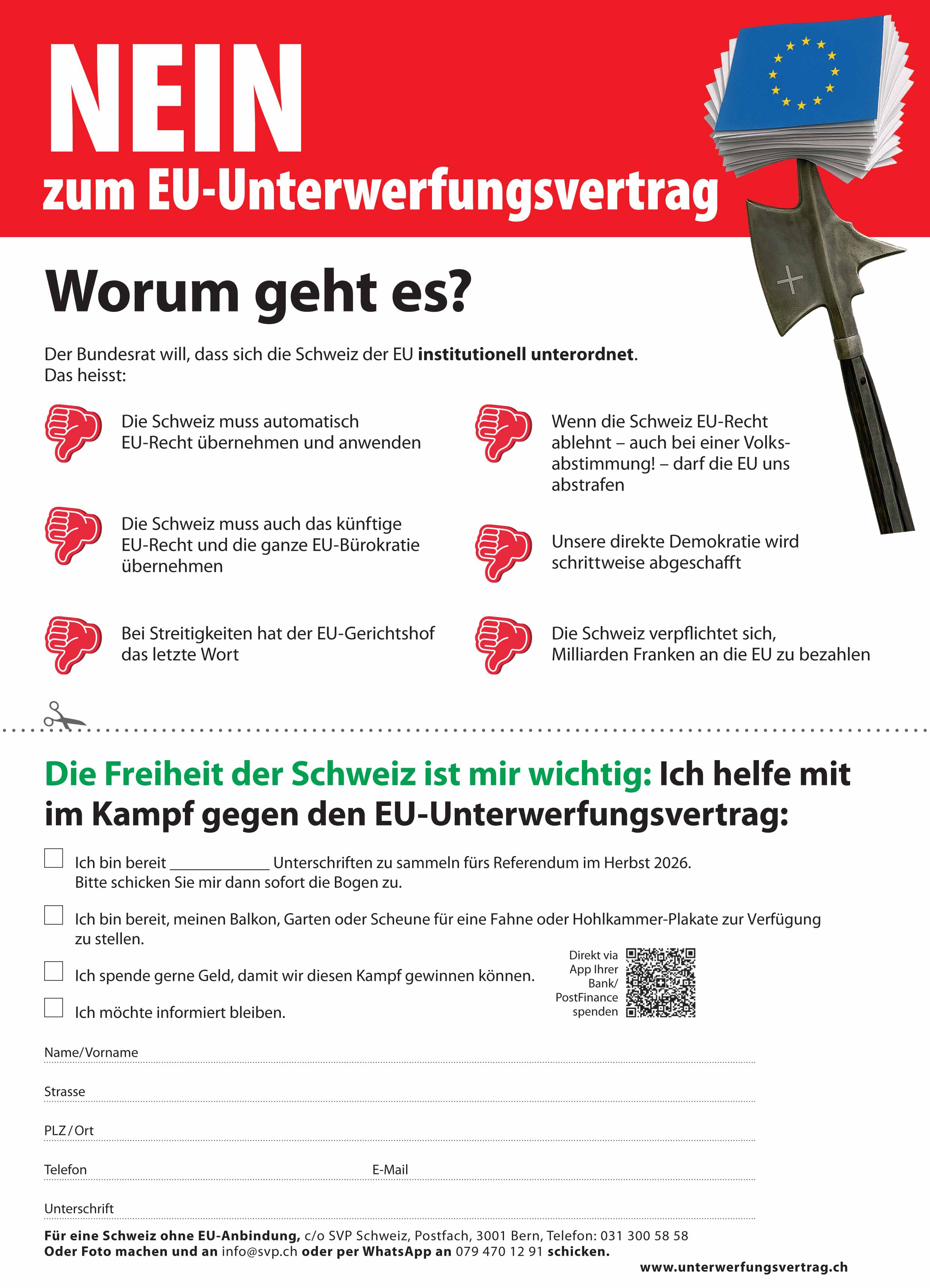- Unterschriften fürs bevorstehende Referendum zu sammeln (Referendum: voraussichtlich im Herbst 2026, Abstimmung im 1. Halbjahr 2027)