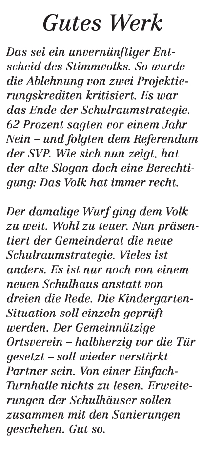 Neue Schulraumstrategie: Der Volksentscheid (dank dem SVP-Referendum) war ein Gewinn für Wohlen,