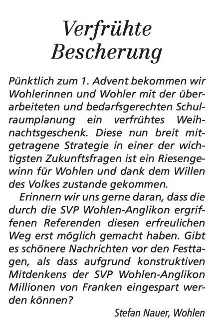 siehe auch https://www.svp-wohlen-anglikon.info/ und Leserbriefe dazu!!