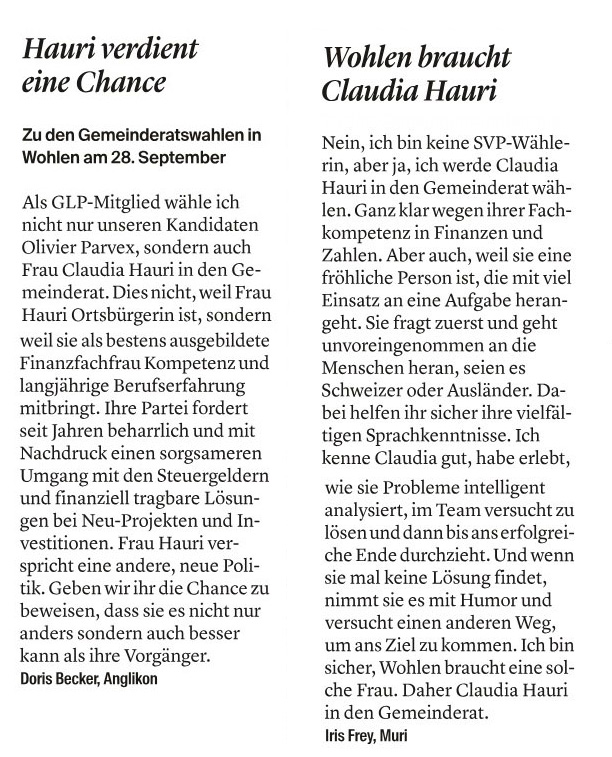 22.08.2025, Diana Holliger "Claudia Hauri in den Gemeinderat"