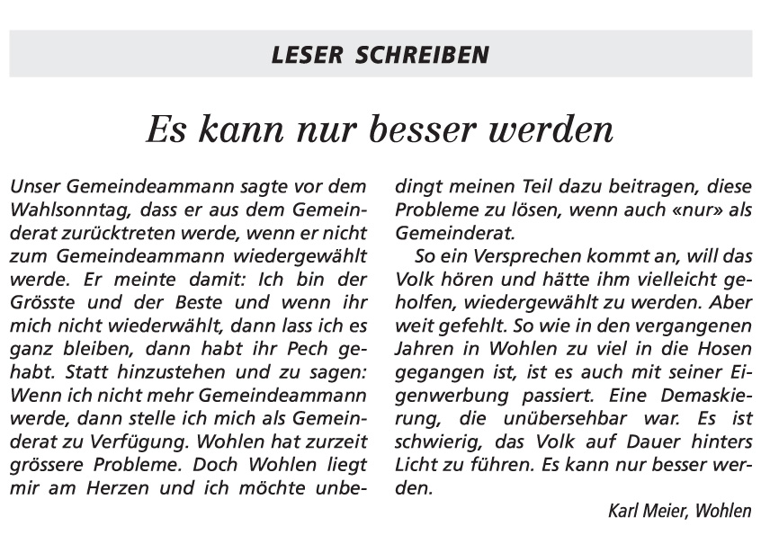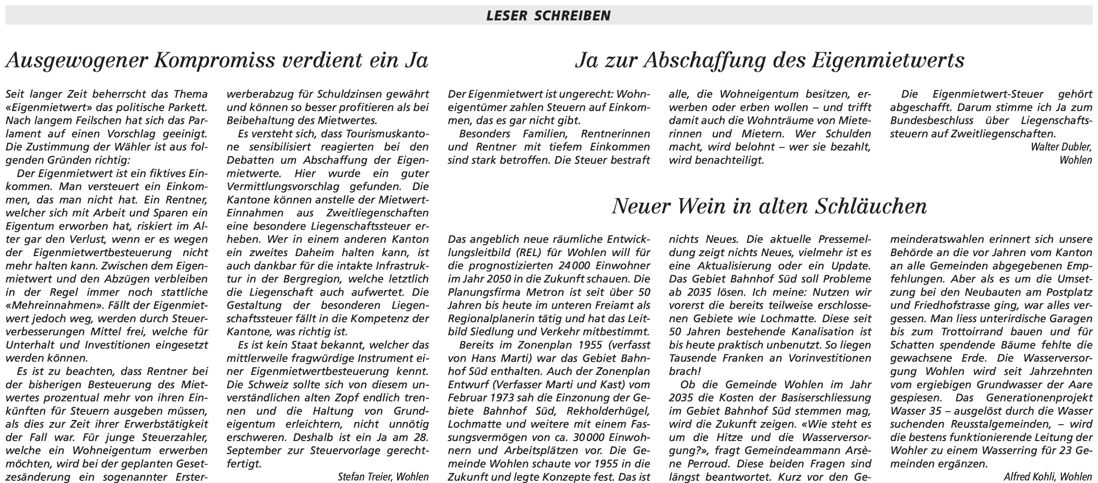 26.08.2025, Stefan Nauer "Typisch" und Roland Schneider "Wahlgedanken" und Ursula Notter-Steiner "Wohlen einfach unverbessserlich"