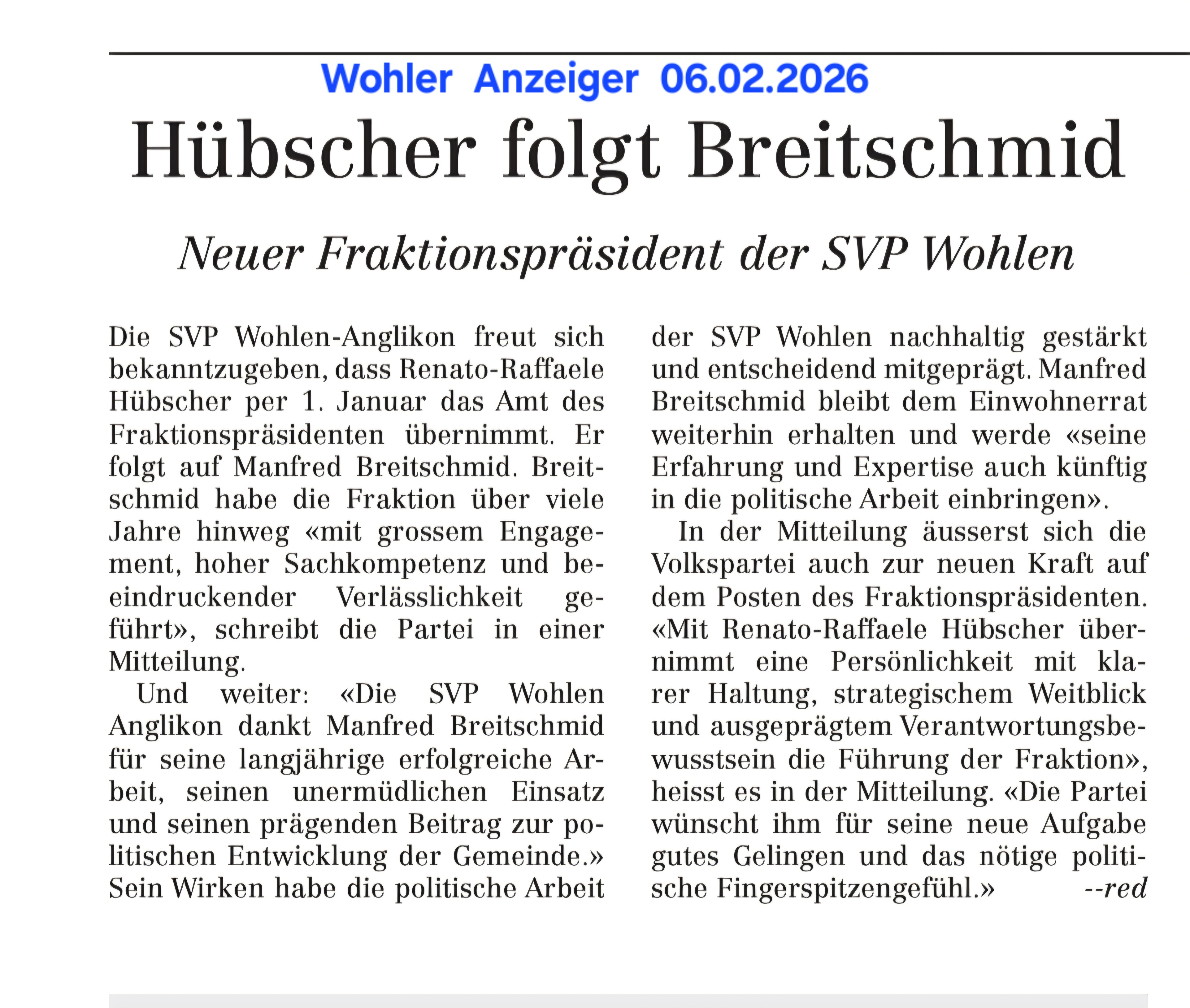 06.02.2026, SVP Vorstand, "Hübscher folgt auf Breitschmid",