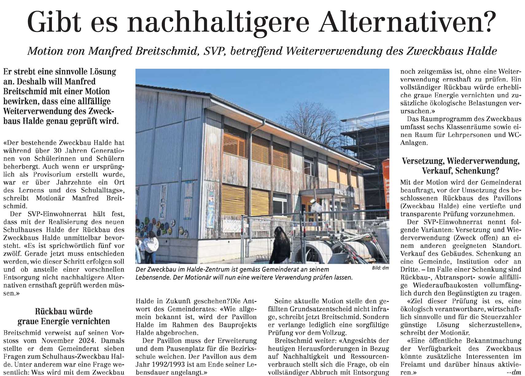 im Wohler Anzeiger: Manfred Breitschmid Anfrage "Kauf Occasion-Modulbau zur Erweiterung des Gemeindehauses"